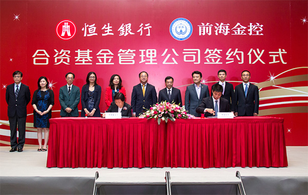 恒生銀行與深圳市前海金融控股有限公司(簡(jiǎn)稱前海金控)7月24日在前海簽署合資協(xié)議,籌備向內(nèi)地監(jiān)管機(jī)構(gòu)申請(qǐng)?jiān)O(shè)立合資基金管理公司。