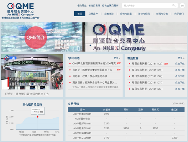 前海聯(lián)合交易中心為香港交易及結(jié)算所有限公司(香港交易所)在中國(guó)內(nèi)地設(shè)立的大宗商品交易平臺(tái),以氧化鋁現(xiàn)貨為首個(gè)交易品種。自10月19日上線交易以來(lái),QME根據(jù)國(guó)內(nèi)鋁產(chǎn)業(yè)布局和市場(chǎng)需求共推出17個(gè)細(xì)分氧化鋁現(xiàn)貨品種,其中AO中鋁交口1810、AO中鋁焦作1810、AO中鋁鄭州1810和AO中鋁遵義1810為首月的主要成交品種。