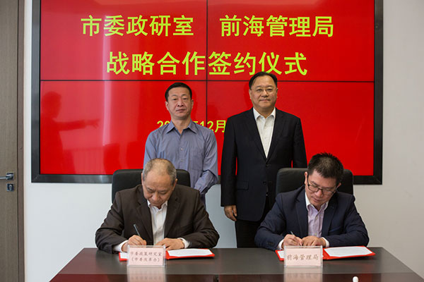 12月26日上午,前海管理局與市委政研室(市委改革辦)簽署戰(zhàn)略合作框架協(xié)議,市政府黨組成員、前海管理局局長杜鵬,市委副秘書長、市委政研室(市委改革辦)主任孫波出席簽約儀式。市委政研室(市委改革辦)巡視員肖中舟、前海管理局副局長王錦俠、自貿制度創(chuàng)新處以及前海金控有關負責同志參加相關活動。