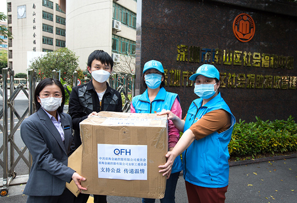 3月13日,在市慈善會(huì)的協(xié)助下,前海金控黨委和工會(huì)女職工委員會(huì)赴南山區(qū)社會(huì)福利中心開(kāi)展戰(zhàn)疫志愿活動(dòng),送上一次性醫(yī)用口罩和防疫宣傳資料。