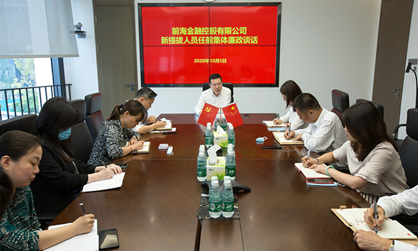 10月5日,前海金控召開新提拔人員集體廉政談話會(huì),公司黨委副書記、總經(jīng)理李劍峰同志對(duì)近期提拔的15名同志進(jìn)行了集體廉政談話。