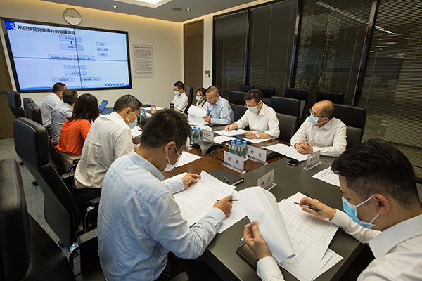 6月下旬,金控公司在前海深港基金小鎮(zhèn)組織前海金融總部大廈項(xiàng)目突發(fā)事件應(yīng)急預(yù)案培訓(xùn)和臺風(fēng)白色、藍(lán)色預(yù)警信息發(fā)布的專項(xiàng)應(yīng)急演練。本次培訓(xùn)及演練的主要目的是進(jìn)一步熟悉應(yīng)急報(bào)告程序、信息發(fā)布和預(yù)警措施,加強(qiáng)公司各級管理人員對項(xiàng)目突發(fā)事件的應(yīng)急處置能力,進(jìn)一步提高應(yīng)急響應(yīng)綜合業(yè)務(wù)素質(zhì)。公司領(lǐng)導(dǎo)班子成員,公司安委會委員,安委辦成員參加了會議。