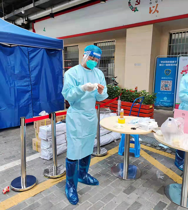 在封區(qū)的第一天晚上,二月的強(qiáng)冷空氣還未散盡,溫度仍然較低,黨員志愿者李鵬帶領(lǐng)6人小組,先對(duì)當(dāng)天已檢測(cè)過(guò)的居民進(jìn)行登記,隨后聯(lián)系社區(qū)管理員,通過(guò)樓棟溝通微信群和中控室廣播組織居民從低層到高層有序下樓檢測(cè);王粲、董哲、程佳穎、劉云蕾等黨員志愿者積極配合檢測(cè)人員順利完成近1000人的檢測(cè)任務(wù),讓群眾少跑路、少等待,讓檢測(cè)安全有序;黨員志愿者余舟了解到有居民因病臥床無(wú)法下樓進(jìn)行核酸檢測(cè),立即聯(lián)系社區(qū)進(jìn)行登記,為群眾提供貼心上門服務(wù)。