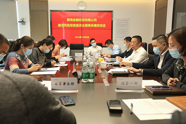 為進一步夯實黨風廉政建設(shè)主體責任,規(guī)范權(quán)力運行監(jiān)督,有效防范廉潔風險,近日,前海金控公司紀委書記、監(jiān)事會主席王耘組織召開公司廉潔風險排查座談會暨集體廉政談話,各部門負責人參加會議。