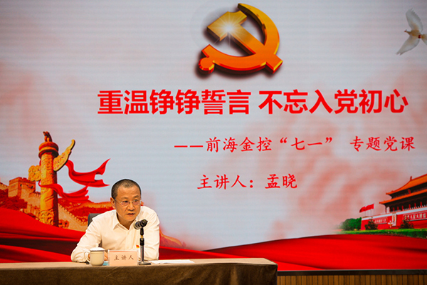 公司黨委書記、董事長孟曉以《重溫錚錚誓言 不忘入黨初心》為題講授專題黨課,從中國共產(chǎn)黨人的“初心”出發(fā),認(rèn)真回顧入黨誓詞的歷史淵源和豐富內(nèi)涵,詳細(xì)解讀入黨誓詞對黨員提出的根本要求,勉勵(lì)黨員干部不忘入黨誓詞、發(fā)揚(yáng)前海精神,以實(shí)際行動(dòng)履行光榮使命,開創(chuàng)前海金融創(chuàng)新工作新局面,為公司業(yè)務(wù)持續(xù)發(fā)展做出應(yīng)有貢獻(xiàn)。