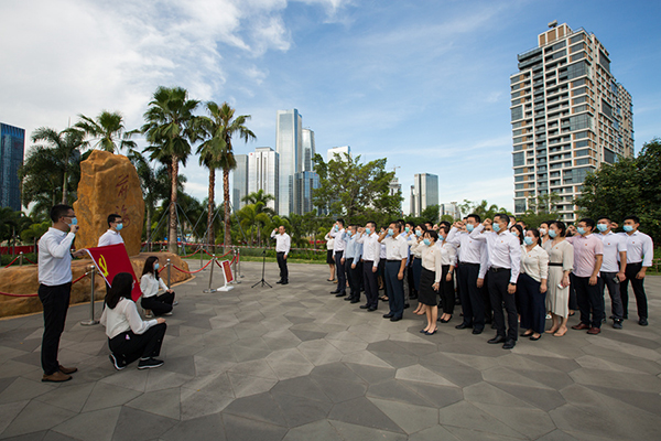 表彰會(huì)后,全體黨員赴前海石公園重溫入黨誓詞。全體黨員面對黨旗,由孟曉同志領(lǐng)誓,向著黨旗作出莊嚴(yán)承諾,不忘初心、牢記使命,以永不懈怠的精神狀態(tài)和一往無前的姿態(tài),為前海金融事業(yè)發(fā)展而奮斗。