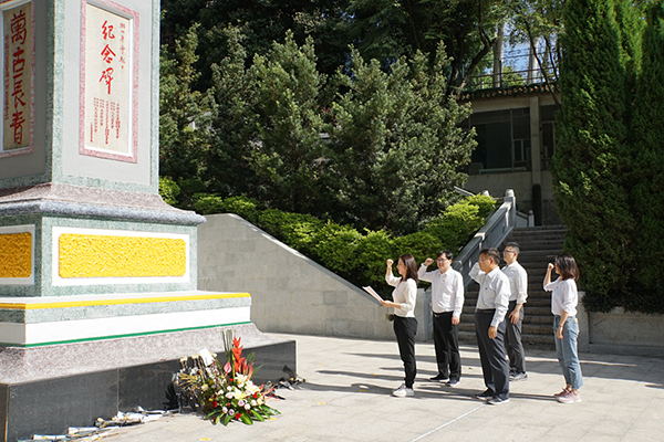 在潮州革命烈士紀(jì)念碑下,支部書記帶領(lǐng)支部黨員向紀(jì)念碑敬獻(xiàn)花籃,緬懷革命烈士,并在紀(jì)念碑下重溫入黨誓詞,向革命烈士表達(dá)敬意的同時(shí),也提醒大家不忘共產(chǎn)黨員的初心和使命。