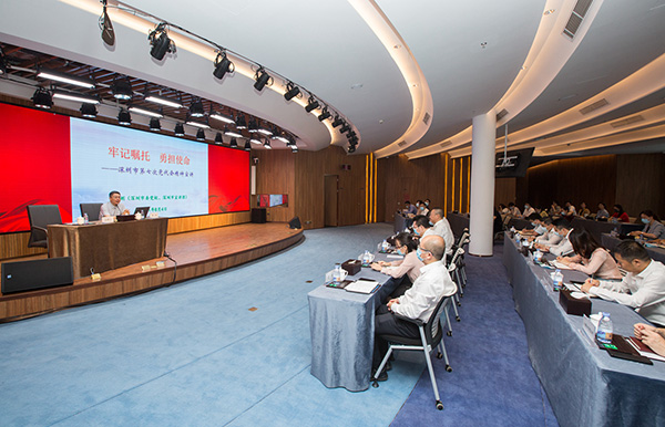譚剛副院長以“七一”重要講話精神為指引,結(jié)合黨史學(xué)習(xí)教育,緊扣市第七次黨代會精神,詳細解讀了市第六次黨代會以來取得的突出成績,習(xí)近平總書記、黨中央賦予深圳的新時代歷史使命,未來五年深圳發(fā)展的奮斗目標(biāo)和主要任務(wù),以及深圳未來發(fā)展的目標(biāo)任務(wù)、時間表、路線圖,重點闡釋了在新的起點建設(shè)什么樣的新時代經(jīng)濟特區(qū),以及關(guān)系經(jīng)濟特區(qū)發(fā)展的相關(guān)問題。