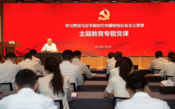 隨后,孟曉同志以“學(xué)習(xí)貫徹習(xí)近平新時(shí)代中國特色社會(huì)主義思想 全面推進(jìn)金控公司高質(zhì)量發(fā)展”為主題,圍繞習(xí)近平新時(shí)代中國特色社會(huì)主義思想的重要意義和內(nèi)涵、新時(shí)代新征程國有企業(yè)工作方向,結(jié)合主題教育總要求和金控公司實(shí)際,講授主題教育專題黨課。他要求,全體黨員要牢牢把握“學(xué)思想、強(qiáng)黨性、重實(shí)踐、建新功”的總要求,緊緊錨定主題教育的目標(biāo)任務(wù),圍繞中心、服務(wù)大局,把學(xué)習(xí)成效體現(xiàn)到落實(shí)《前海方案》、前海管理局“五張清單”和“前海金融30條”相關(guān)部署的實(shí)際行動(dòng)上,全面推進(jìn)金控公司高質(zhì)量發(fā)展,為前海打造全面深化改革創(chuàng)新試驗(yàn)平臺(tái)和建設(shè)高水平對(duì)外開放門戶樞紐作出新貢獻(xiàn)。