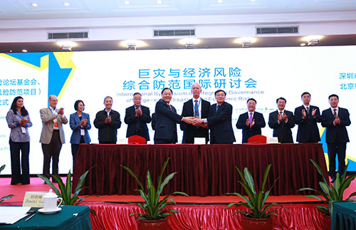 5月13—14日,由北京師范大學、深圳市前海管理局、達沃斯全球風險論壇共同主辦,民政部-教育部減災與應急管理研究院、前海金融控股有限公司、前海再保險股份有限公司、未來地球綜合風險防范項目共同承辦的“巨災與經濟風險綜合防范國際研討會”在深圳成功舉辦。來自全球的百余名頂尖專家學者齊聚,共議巨災與經濟風險綜合防范。研討會上,三家主辦單位共同發(fā)布了《巨災與經濟風險綜合防范的前海共識》,并簽署戰(zhàn)略合作框架協(xié)議,約定每隔一年共同主辦一次全球性綜合風險防范會議。